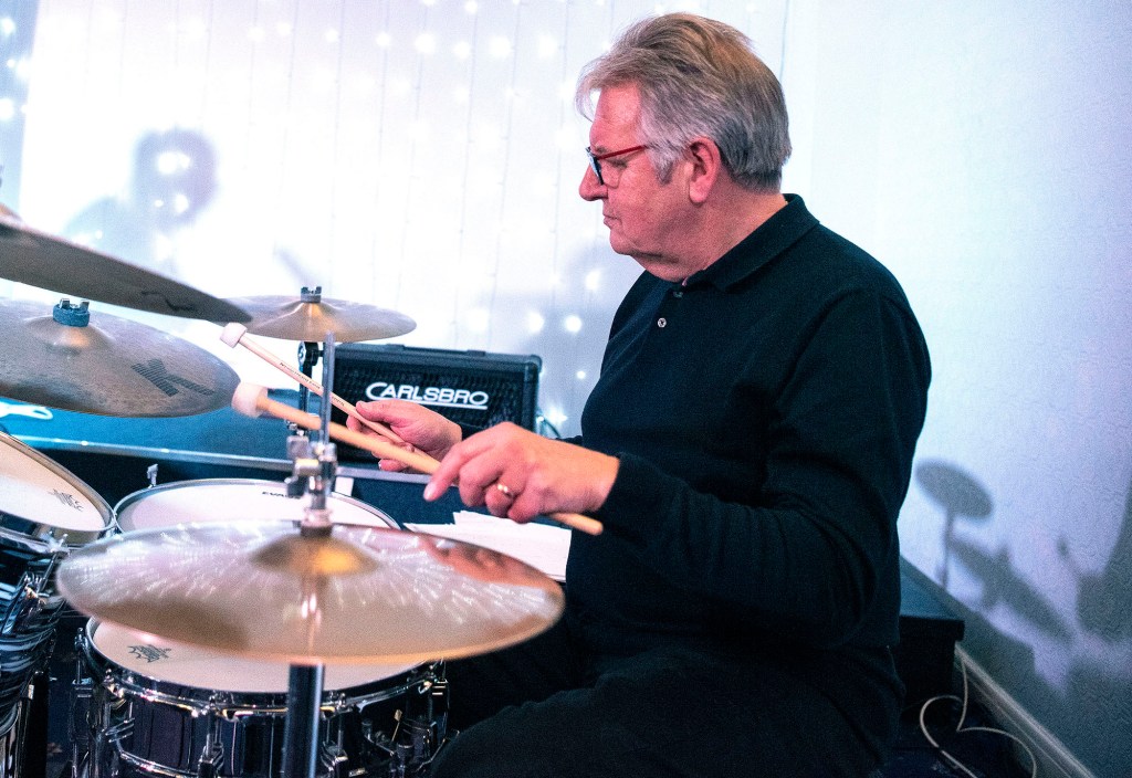 Claim to fame: teaching Bill Ward (Black Sabbath) the rudiments. He’s very happy now playing with New Vintage.
